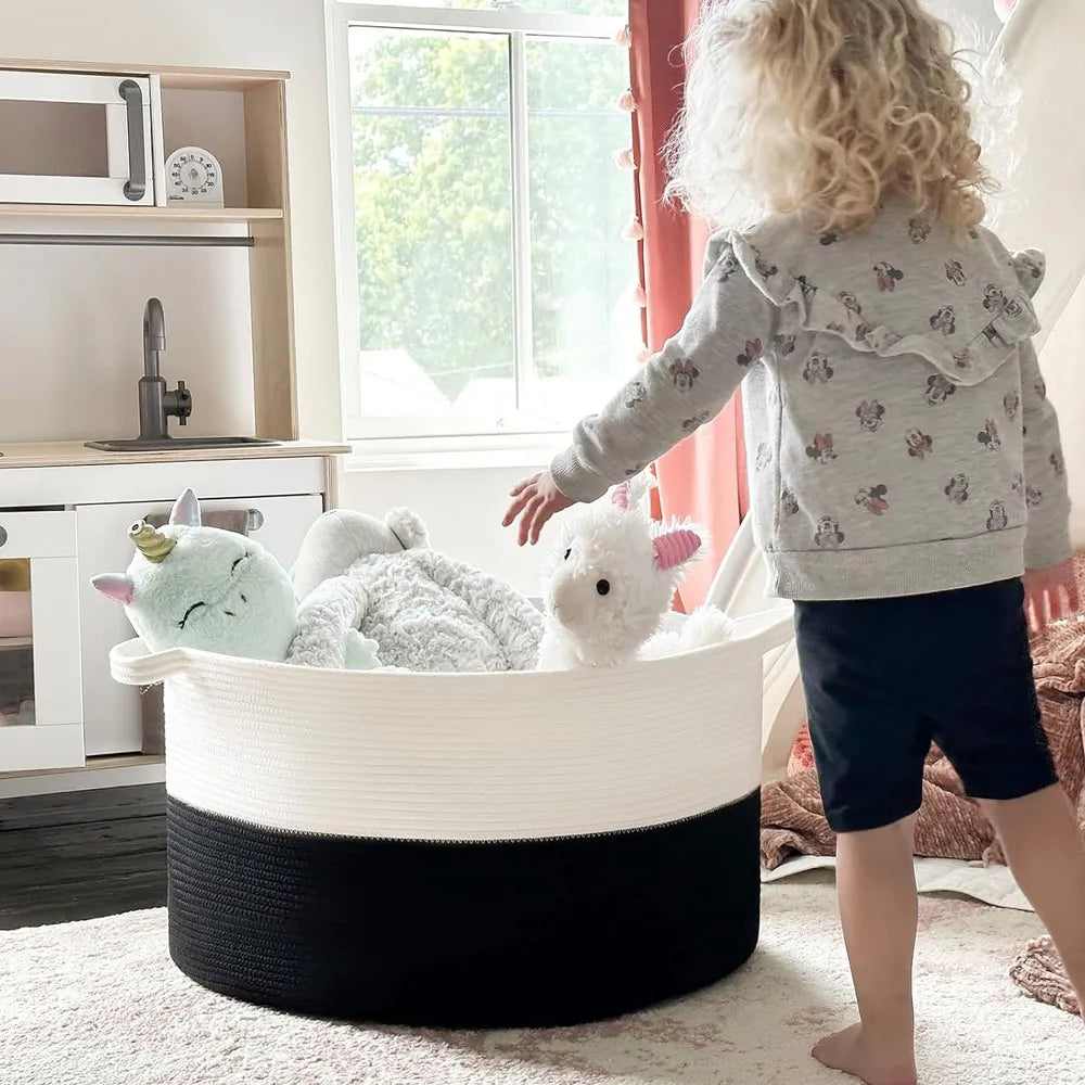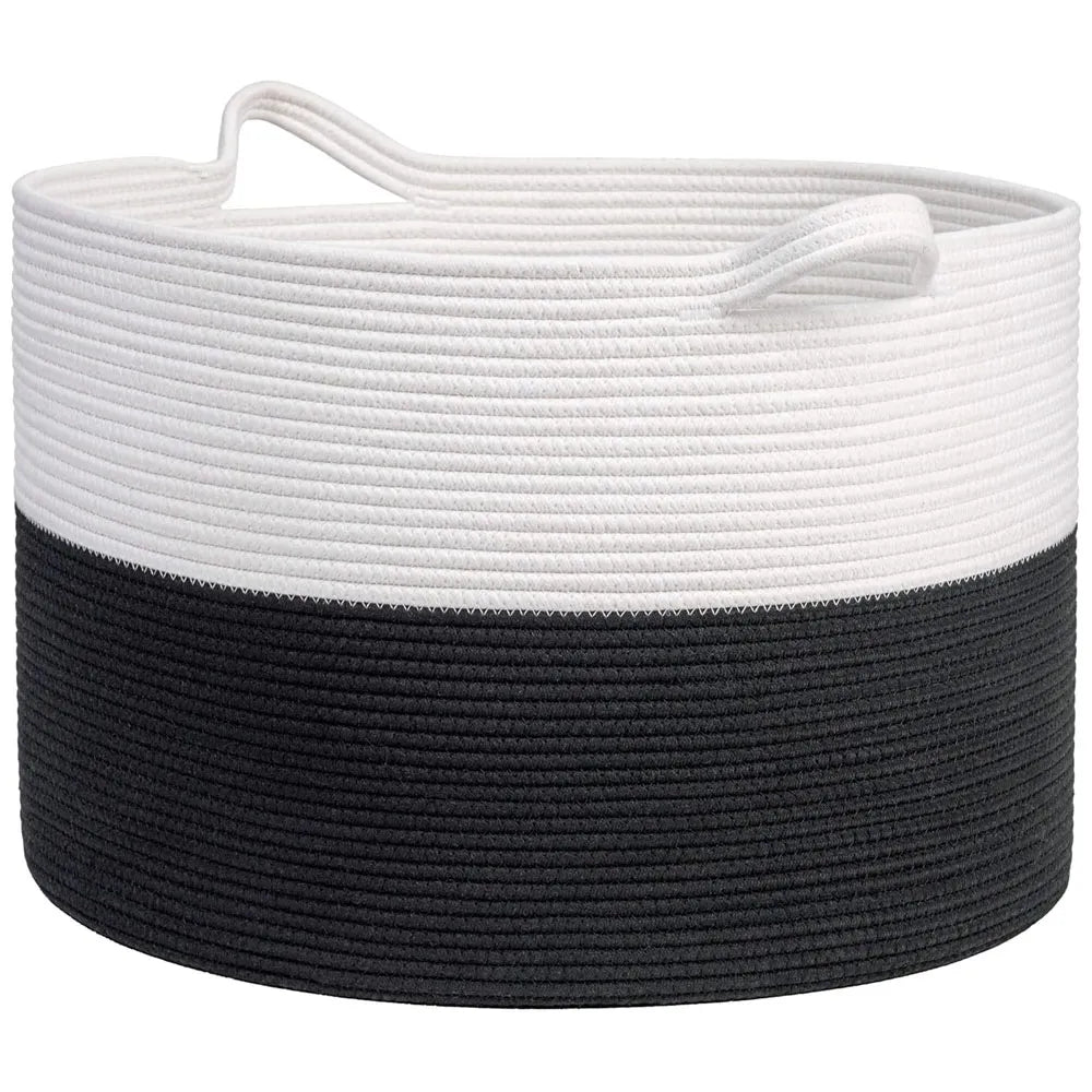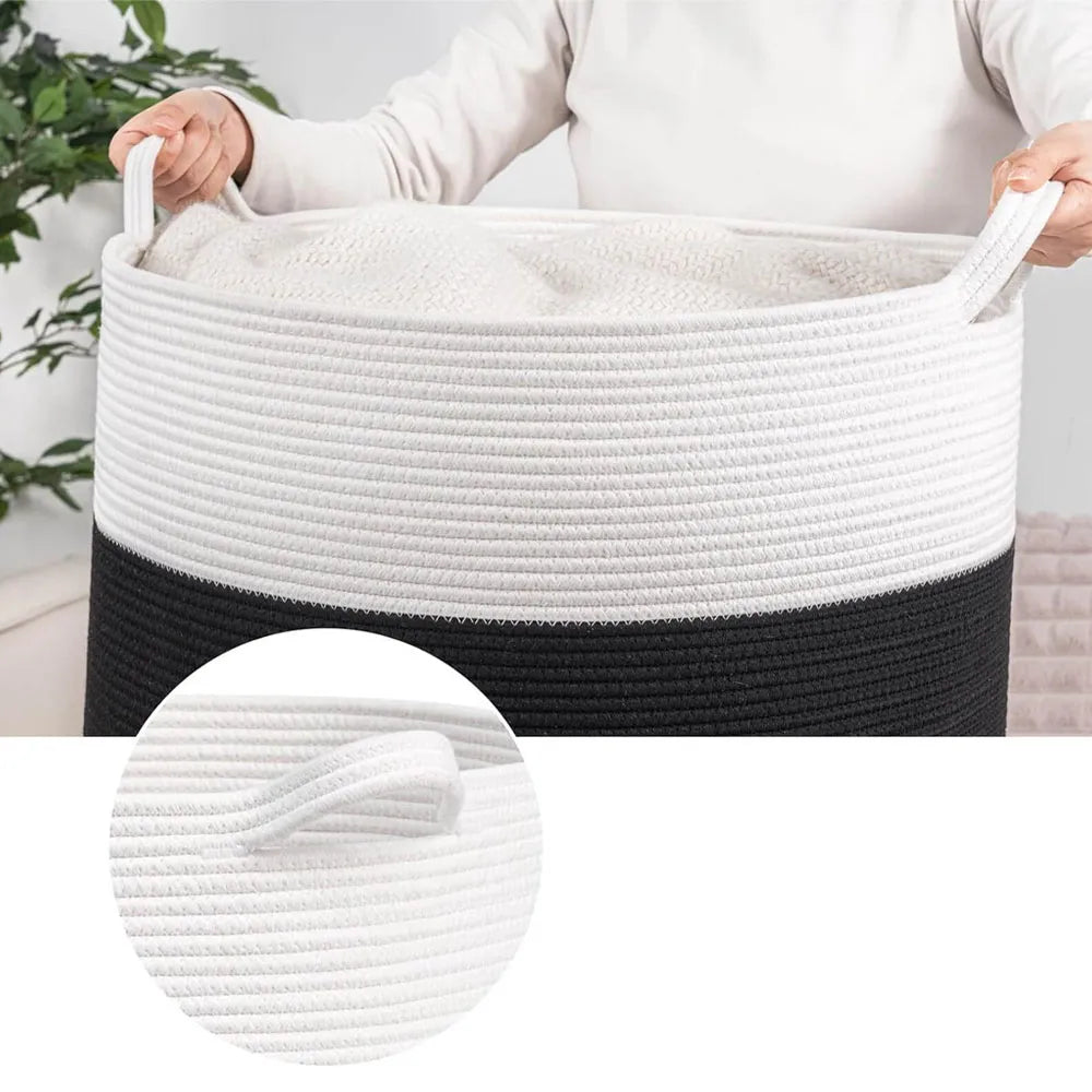 Cesta de Almacenamiento Multiusos Tejido de Algodón Color Blanco-Negro